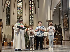 Nach dem Unterricht versammelten sich alle Klassen und einige Eltern in der Kirche St. Joseph zu einem feierlichen Gottesdienst, der durch den stimmungsvollen Laterneneinzug von zwei Kindern aus jeder Klasse eingeleitet wurde. Es wurden Fürbitten und zahlreiche Lieder gesungen. Insbesondere sorgte das Lied „Lichterkinder“ für einen besonderen Moment in der Kirche.