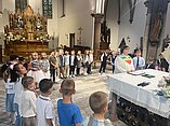 Ein besonderer Moment war der Einzelsegen, bei dem die einzelnen Klassen sich um den Altar versammelten und bei schönen Liedern den Segen erhielten.