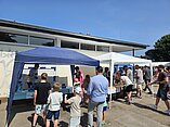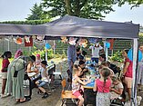 Im Anschluss wartete ein abwechslungsreiches Programm auf unsere Besucher: An verschiedenen Spielständen, die im Rahmen unserer Projektwoche von den einzelnen Klassen vorbereitet worden sind, konnten Groß und Klein ihre Geschicklichkeit unter Beweis stellen - ob beim Entenangeln, beim Dosenwerfen, dem Plankenlauf oder der Hüpfburg. Auch die Kreativität kam nicht zu kurz, denn an einigen Ständen konnten unsere Besucher Armbänder basteln, sich mit Glitzertattoos schmücken oder eigene Meereslandschaften gestalten.