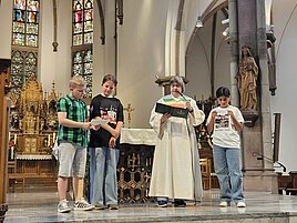 Am Tag der Zeugnisausgabe stand für unsere Viertklässlerinnen und Viertklässler nun der Abschied von ihrer Grundschulzeit an. Diesen Abschied begingen wir in der Kirche St. Joseph mit einem stimmungsvollen Gottesdienst zum Thema “Begleiter”.