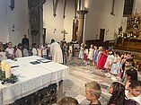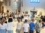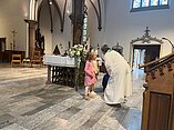 Ein weiterer Höhepunkt war die persönliche Segnung jeder einzelnen Klasse. Im Rahmen der Segnung erhielt jedes Kind einen Schutzengelanhänger überreicht - als Erinnerung und als Zeichen, dass sie behütet ihren neuen Lebensweg weitergehen dürfen.