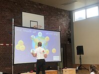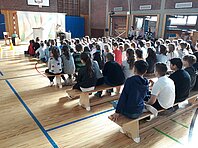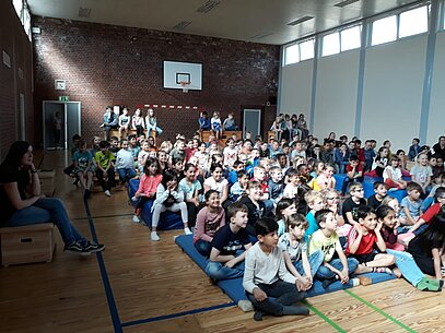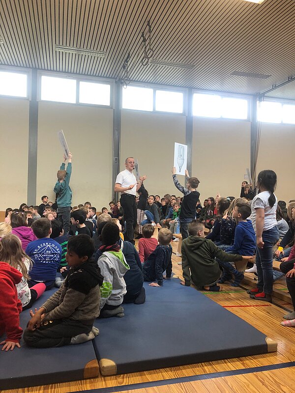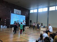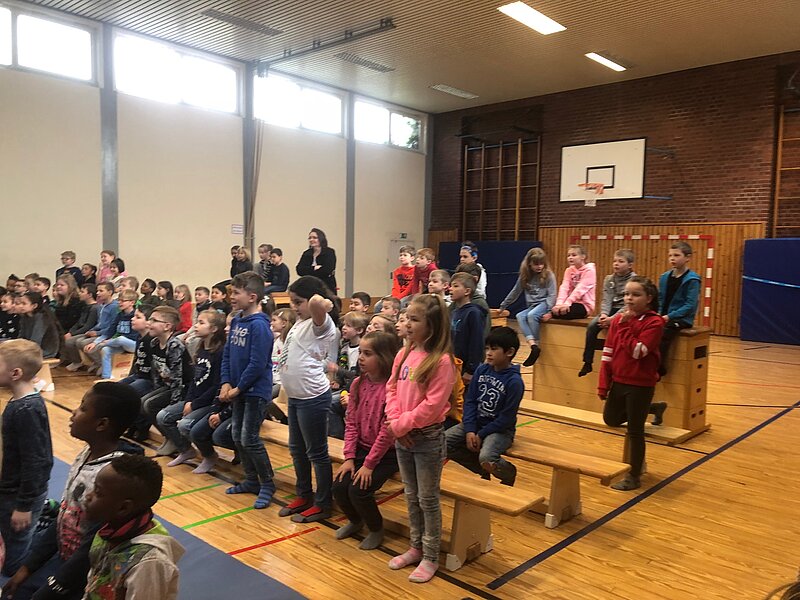 Da die Kinder und auch einige Lehrerinnen aktiv mit einbezogen wurden und bei der Veranschaulichung der Zusammenhänge halfen, verging die Stunde wie im Flug.