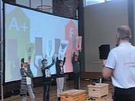 Im März besuchte die Klasse 1c die Wanderausstellung: Mini-Mathematikum der Universität Gießen in der Stadtbibliothek Essen. In vielfältiger Weise konnten die Kinder Erfahrungen zu Zahlen, Körpern und Formen sammeln. So versuchten die Kinder am Knobeltisch eine Pyramide zusammenzubauen oder bunt gefärbte Quadrate richtig anzuordnen. Sie erfühlten Formen und konnten sich im Spiegelhaus unendlich oft von allen Seiten sehen. Zum Schluss ordneten alle Kinder zusammen Zahnräder an einer Wand so an, dass sich alle drehten. Die Experimente bereiteten den Kindern viel Freude.